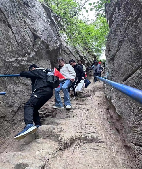 藏龍澗,或懸崖峭壁或羊腸道,或視野開(kāi)闊或一線(xiàn)天,很多景點(diǎn)需要大家協(xié)作才能順利通過(guò)。青年志愿者互幫互助,團結協(xié)作,相互了解、彼此融入。