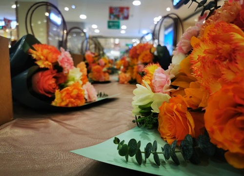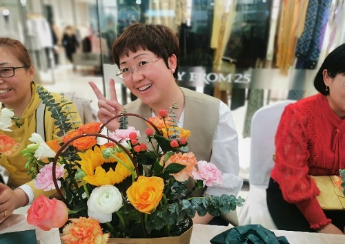 經(jīng)過(guò)大家精巧的修飾與加工之后,現場(chǎng)的花束逐漸蛻變成為一件件賞心悅目、錯落有致、別出心裁、創(chuàng )意十足的花藝作品?;▓F錦簇的花藝中也映襯著(zhù)一張張燦爛滿(mǎn)意的笑臉。女嘉賓們對自己的作品愛(ài)不釋手,紛紛拿出手機拍照,活動(dòng)現場(chǎng)處處洋溢著(zhù)花香和歡笑。 花香彌散在空氣之中,在一修一剪之間,在感受美、欣賞美、創(chuàng )造美的過(guò)程中,女嘉賓們在華聯(lián)收獲了滿(mǎn)滿(mǎn)的幸福,度過(guò)了一個(gè)有意義的“女神”節。此次活動(dòng)在溫馨、歡樂(lè )的氛圍中圓滿(mǎn)結束。
